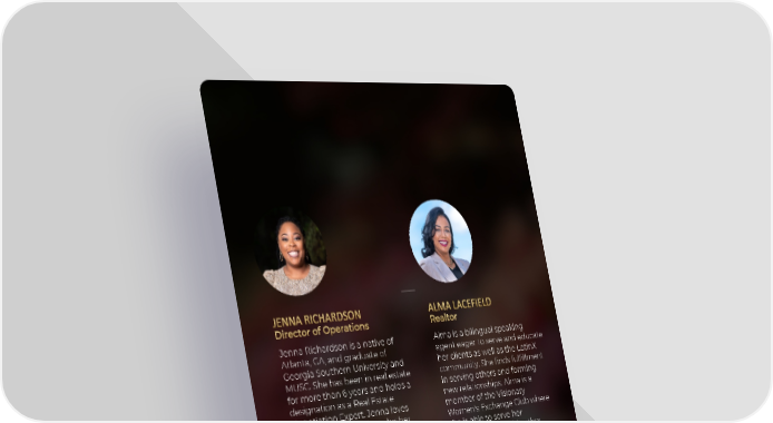 Jenna Richardson is a native of Alma is a bilingual speaking Atlanta, GA, and graduate of agent eager to serve and educate Georgia Southern University and her clients as well as the LatinX MUSC. She has been in real estate community. She finds fulfillment for more than 6 years and holds a in serving others and forming designation as a Real Estate new relationships. Alma is a Negotiation Expert. Jenna loves member of the Visionary designing and crafting,whether Women's Exchange Club where it’s a floral arrangement or she is able to serve her making DIY furniture from community alongside other scratch. amazing women. Fun Fact: Alma was raised in a Fun Fact: Twelve years ago, when home where it was mandatory to Jenna was looking to purchase speak Spanish. Although, at the her first home, she found a total time, it was bothersome, she was fixer upper (foundation sinking so grateful because it has made and everything) in Summerville in her fluent in two languages; Kings Grant. She was adamant, Spanish and English. not until a wise woman, her mom, saw this house and said, “Jenna, I’ll give you the down payment money to buy a new house. Just please don’t buy this one. Momma Lo was not able to talk her out of that one, but she hasn’t been able to keep her from homes that need love. This was the beginning of her flipper’s journey.” Page| 13