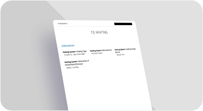 55 Elizabeth St 13: HEATING Information Heating System: Heating Type Heating System: Manufacturer Heating System: Heating Energy Forced Air, Gas-Fired Heat Williams, Sears Source Natural Gas Heating System: Description of Vents/Flues/Chimneys Metal Flue Pipe Carolina Premier Inspections LLC Page 56 of 78